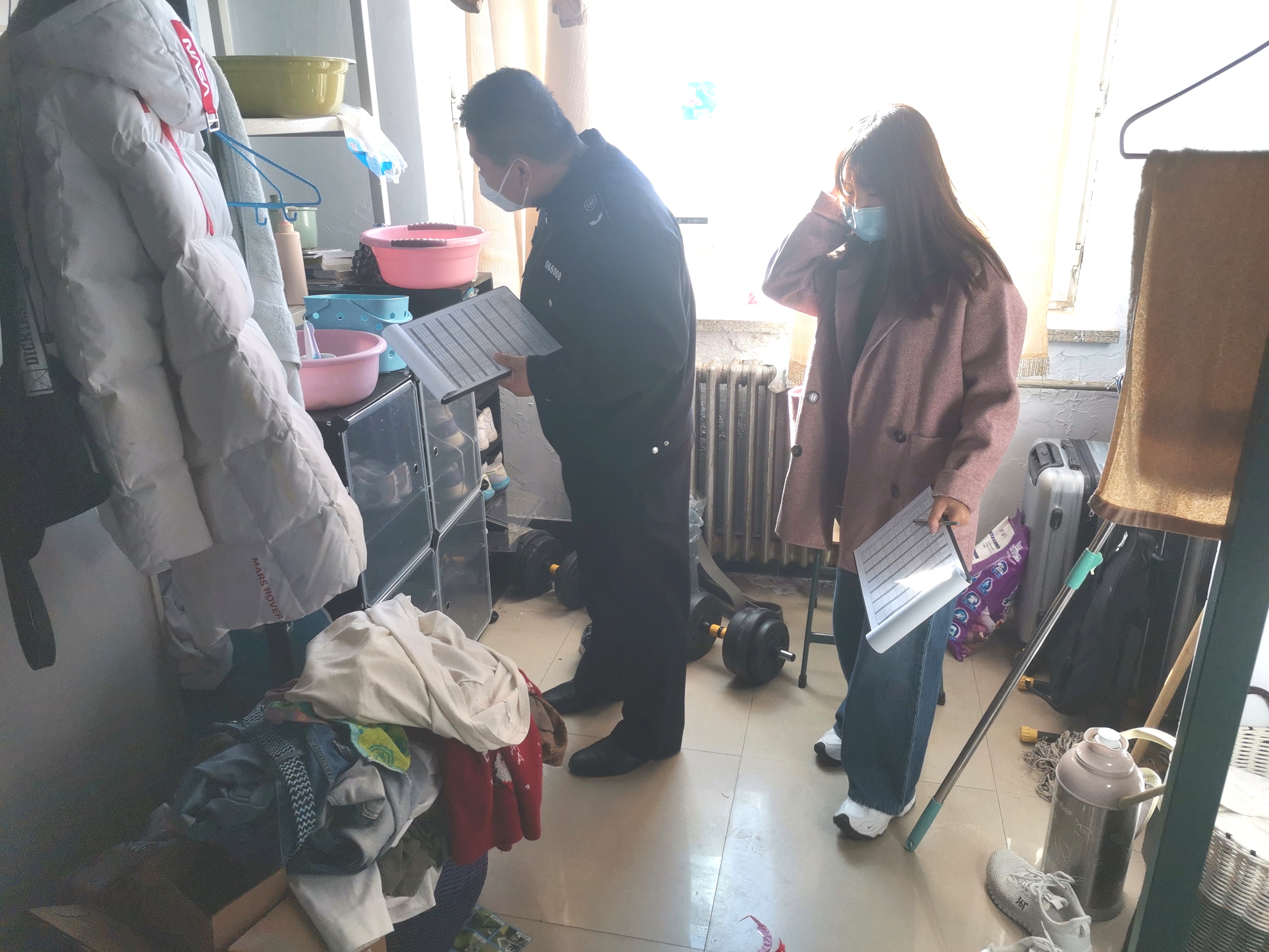 此次活动主要对学院一公寓男生寝室3楼进行寝室卫生情况的检查。本次检查主要对新生寝室的物品摆放、电线电路和卫生情况进行了详细的检查,并向同学们强调了寝室的用水用电安全问题。同学们都表示会注意寝室卫生和安全问题,维护好生活环境的整洁卫生。检查过程中,大多数寝室卫生情况良好,没有胡乱摆放物品、乱接插线板的现象,但是也有少数同学的寝室物品摆放杂乱,卫生情况不达标。老师们对出现问题的寝室都及时指正并督促改正。在检查过程中,同学们表现积极,充分展现了同学们对于寝室卫生保持工作的重视。在检查过程中,同学们纷纷表示:定期的卫生检查会让他们时刻意识到寝室卫生的重要性,很好地监督大家保持室内卫生整洁。只有宿舍干净舒适了,大家才能学得更好。