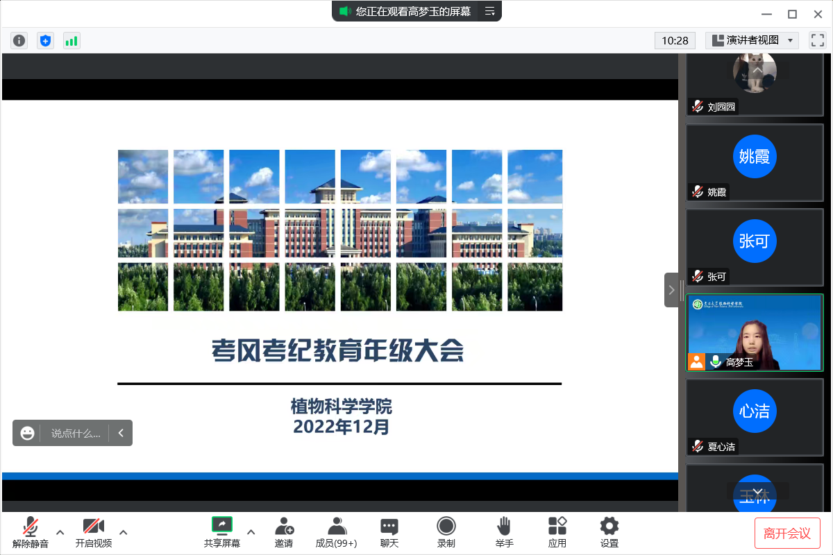 为进一步加强学风、考风教育,严格考试管理,严肃考试纪律,营造文明、诚信考试的良好氛围,提高学生的道德修养和思想素质,12月20日—22日,bat365在线中国官网登录入口各年级召开考风考纪教育大会。会议由2019级、2020级辅导员曾光,2021级、2022级辅导员高梦玉主持,各年级全体本科生线上参会。