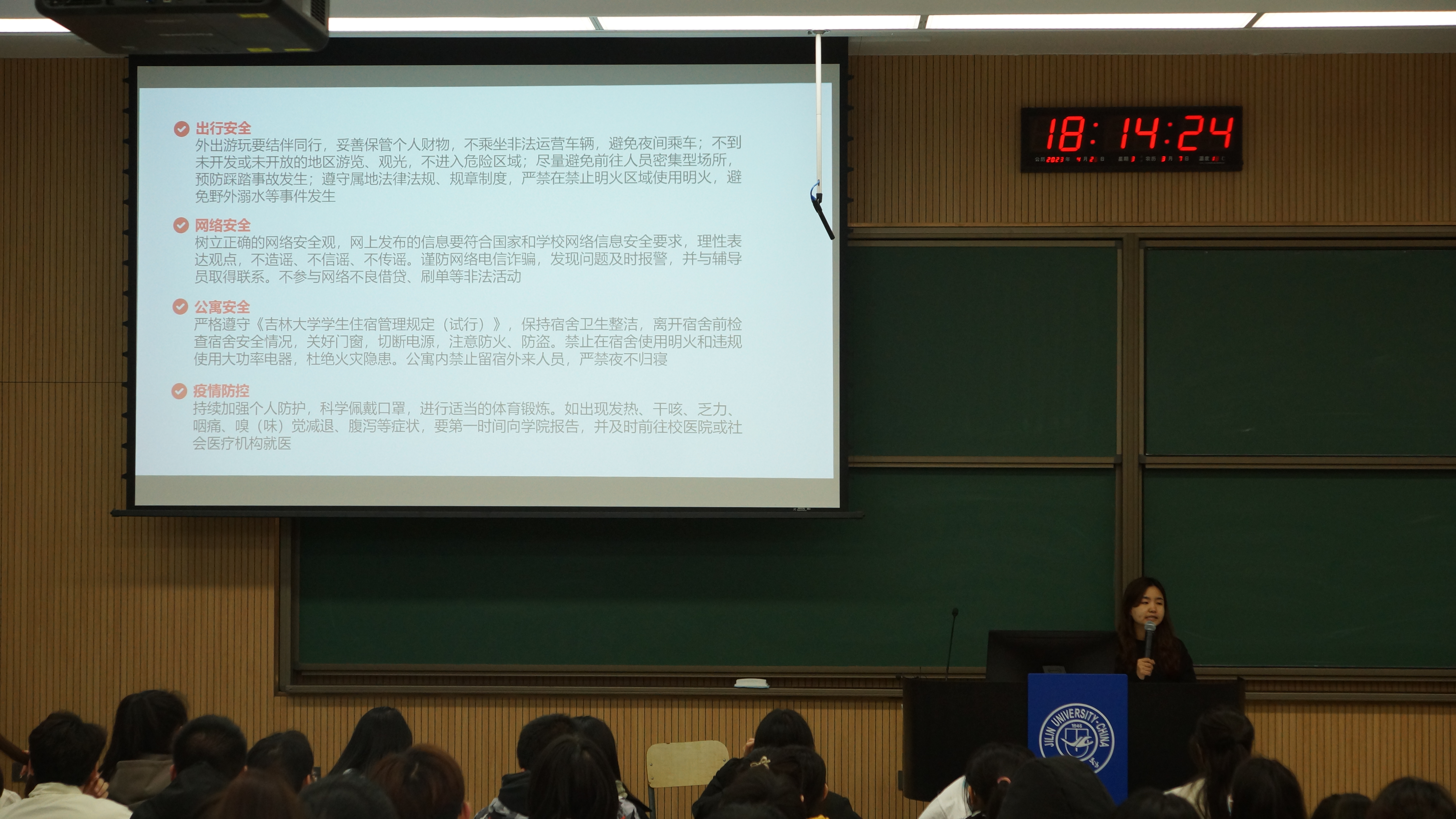 为进一步做好五一假期学生安全教育和校园安全管理工作,增强学生的安全意识和自我保护意识,4月26日晚,bat365在线中国官网登录入口2021级、2022级本科生年级大会于和平校区科学讲堂100阶梯教室召开,会议由辅导员高梦玉主持,2021级、2022级全体学生参加此次会议。