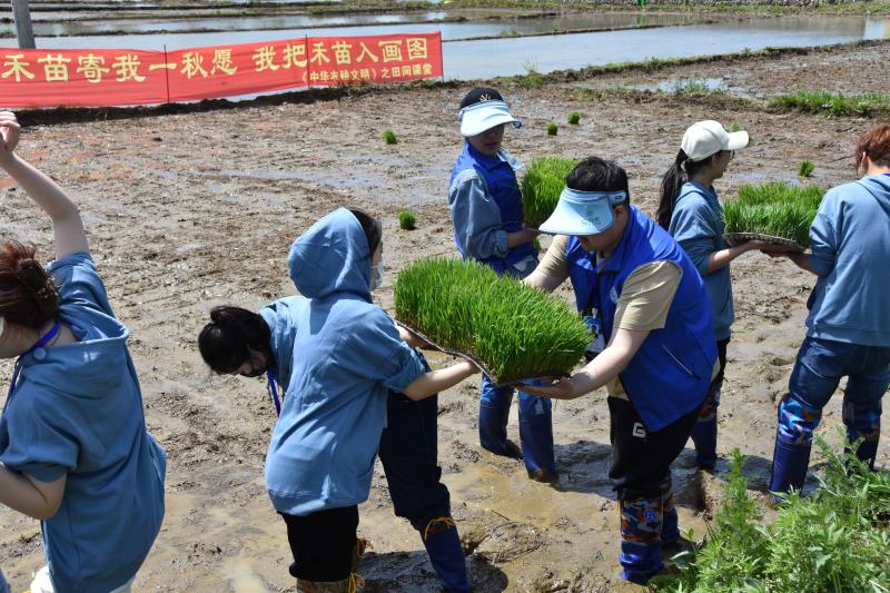 bat365在线中国官网登录入口副院长韩俊友及几位专任教师向实践团师生详细讲解了水稻插秧的注意事项并亲身示范,带头在品种实验区插下垄垄青苗。随后,实践团成员纷纷下田,师生一同换上插秧靴,挽起衣袖,在哈达门乡的稻田间接过秧苗,种下由bat365在线中国官网登录入口植物科学院自主研发的水稻品种——“吉大6”,共同播种下新的希望。在分苗、俯身插秧间,师生种植了水稻,也延续着袁隆平院士的稻田梦想。