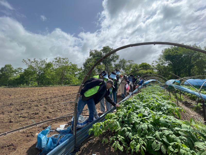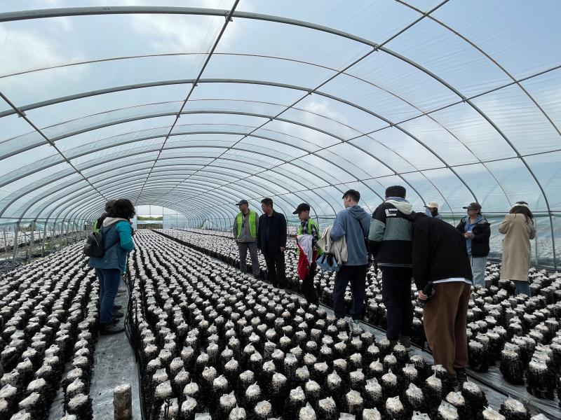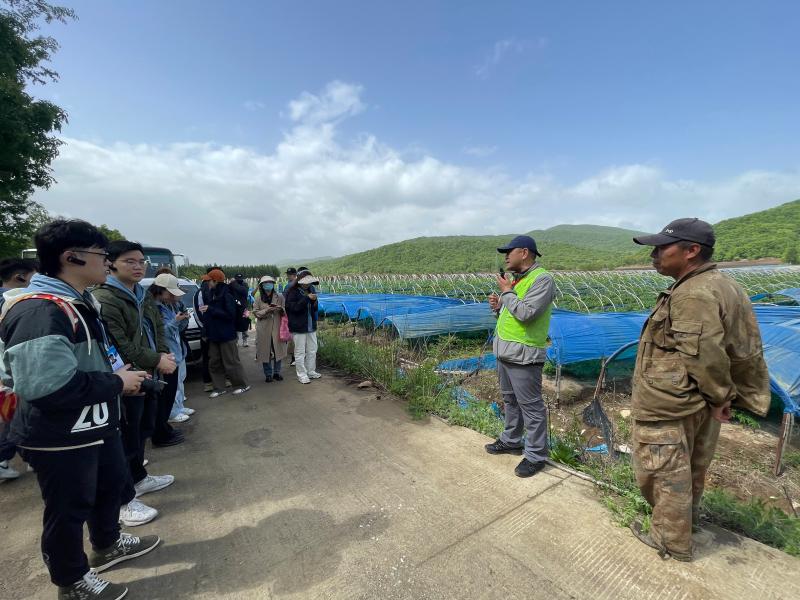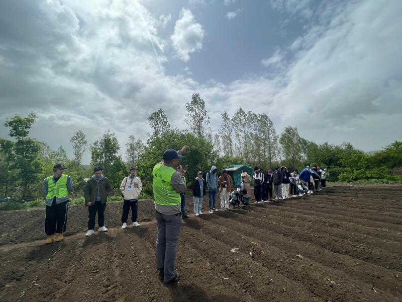 在人参种植基地,工作人员为调研组师生详细讲解人参种植方式,bat365在线中国官网登录入口副教授刘守安向在场学生讲解如何通过叶片辨认人参的生长时间等相关知识。随后,调研组一行前往bat365在线中国官网登录入口大豆试验田进行大豆苗情调研。在副院长韩俊友的讲解下,学生对大豆在生长初期的态势及试验田的设计有了更加全面的理解和认识,通过实地调研有效地将课堂理论知识与具体实践相结合。在东北虎豹公园,调研组师生针对虎豹公园进行实地生态文明建设考察,展开生态治理调查。在bat365在线中国官网登录入口专任教师的指导下,调研组成员深入、全面地了解多种绿植、菌类的生长习性等情况。下午,在珲春市哈达门乡党委书记尹升山的陪同下,调研组前往木耳种植基地进行考察调研,详细了解了木耳的生产和创效情况。据工作人员介绍,在当地政府的支持下,基地不断扩大木耳种植规模,全面提升木耳产业发展水平,实现木耳产业“规模化、智能化、品牌化”发展。
