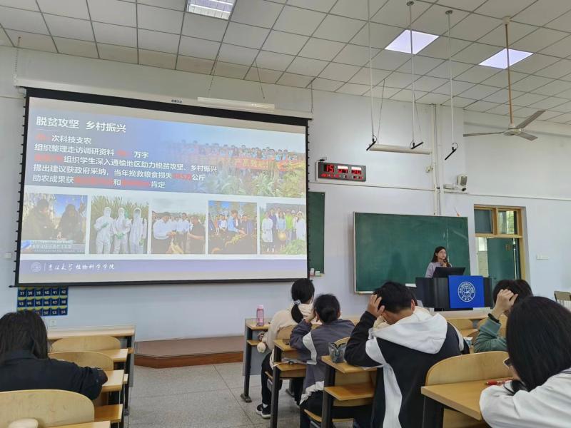 高梦玉介绍了学院科技助农的基本情况,并从理想信念、为民情怀和担当品格三方面,向在场的青年学生讲述了学院师生助力乡村振兴的点滴故事
