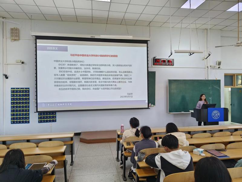五四青年节前夕,习近平总书记给中国农业大学科技小院的同学们回信,提出殷切期望,勉励青年学生厚植爱农情怀练就兴农本领,在乡村振兴的大舞台上建功立业。5月8日,学院团委组织学生集体学习重要回信精神。学院团委负责人高梦玉主持本次活动。