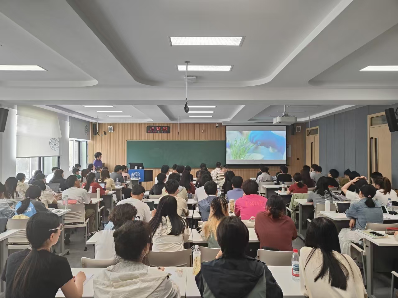 在随后的《利用统计基因组学进行农业适应性研究》专题报告中,鲁非深入浅出地阐述了如何运用基因组学前沿技术解析作物适应机制,并着重强调了该研究在保障国家粮食安全、服务农业强国战略的核心科技支撑作用。其深厚的学术功底和心系农业的情怀,深深感染了在场师生。