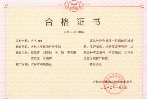 吉大101为吉林省审定的玉米品种,审定编号2010026,由bat365在线中国官网登录入口原亚萍教授研究团队选育。