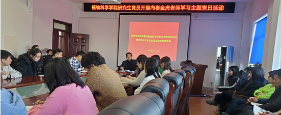 研究生党员组织召开专题党课学习,国以民为本,民以食为天,投身于粮食安全和农业科研是崔金虎教授对于国家最真诚的回馈。青年一代党员同志要励志肩负起党员的责任,不辜负国家的厚望,全体研究生党员以崔金虎老师为榜样,勤奋学习,心系祖国,以学农为荣,以从事农业科学研究为傲,时刻准备着将科研知识转化为实践以回馈祖国与人民。