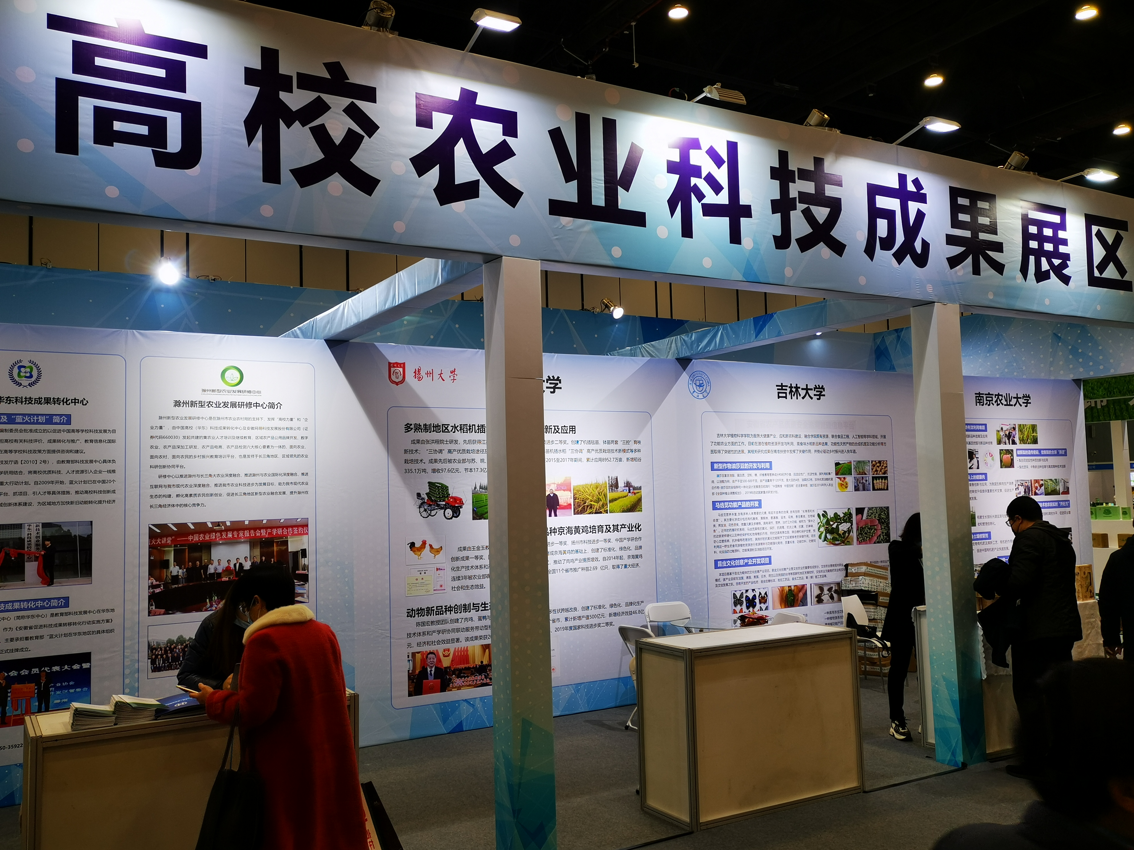 在高校农业科技成果展区,来自于南京农业大学、扬州大学、西北农林大学、东北农业大学、bat365在线中国官网登录入口等高校展示了科技成果及产品,我校展示了国审水稻、玉米品种、新型作物油莎豆开发与利用、马齿苋功能产品开发和藤茶功能产品的开发等科研成果及功能农产品项目,并集中展出了bat365在线中国官网登录入口功能农业基地(通榆)的扶贫产品。新华社记者采访了bat365在线中国官网登录入口植物学院副院长韩俊友教授和吉林通榆经济开发区党工委书记李开福。韩俊友教授介绍了一款由bat365在线中国官网登录入口功能农业团队研发的,30余种粮食(含药食同源植物)为主的。适用亚健康人群的天然、无添加的功能农产品。李开福书记介绍了通榆的自然环境条件、重点推介了来自家乡的优质功能农特产品,并表示在bat365在线中国官网登录入口的定点扶贫工作中,功能农业团队充分挖掘了通榆的自然资源和农业生产特点,仅仅围绕大健康人群的需求,提高了当地农产品的附加值,使农户们增收脱贫,受益良多,对bat365在线中国官网登录入口表示感谢。