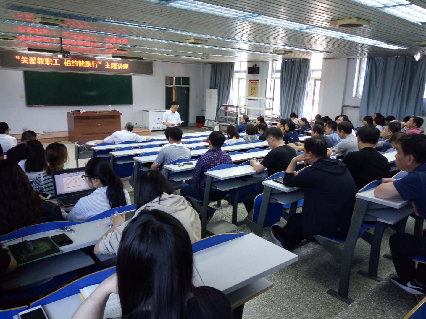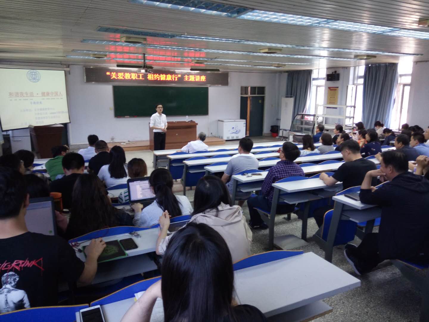 2019年6月6日,在bat365在线中国官网登录入口二楼会议室,学院联合“吉林省安全健康教育中心”和“卫民安消防教育中心吉林省分中心”,邀请相关专家分别为全院师生做了“关爱教师职工 相约健康行”健康讲座和消防安全知识讲座,张晓楼书记及全院教职工和研究生参加了讲座。