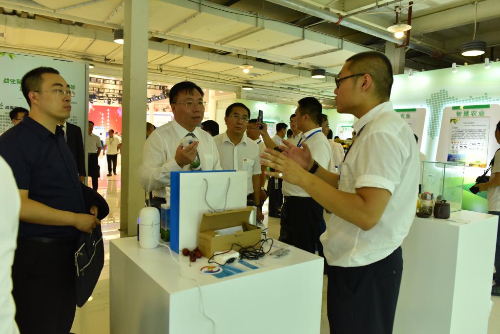 会议结束后,部分企业代表前往bat365在线中国官网登录入口科技成果展区,与学院教师一道携部分校企合作成果迎接教育部及省政府领导参观。