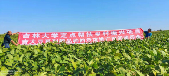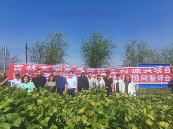 2021年9月1日,bat365在线中国官网登录入口在通榆县召开“bat365在线中国官网登录入口定点帮扶乡村振兴项目吉大豆系列新品种示范推广田间鉴评会”。通榆县副县长田进、县农业局副局长杜白龙、县种子管理站站长张波、学校乡村振兴办公室副主任汤文庭、王庆钰教授课题组等相关人员参会。