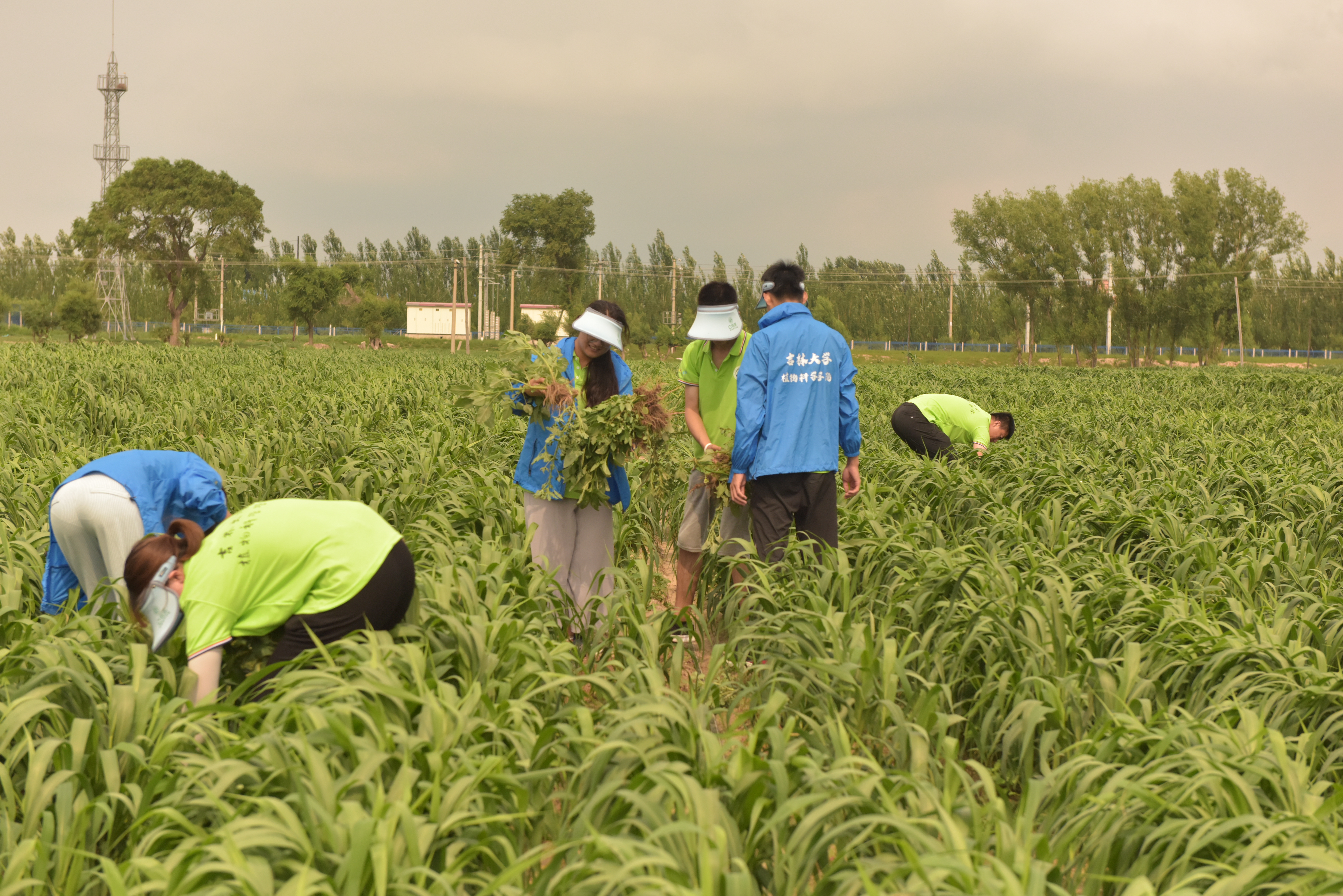 随后,实践团来到bat365在线中国官网登录入口崔金虎教授的试验田进行参观学习。近年来,崔金虎教授为当地农民提供优质种子,结合专业知识对农民进行技术指导,将脱贫攻坚工作开展到田间地头,亲自为农民授课,积极参与并推进县乡农技人员的继续教育,真真切切地把科研成果应用在田间,把国家的相关政策落实到每家每户,极大的提高了当地农作物的产量以及质量,解决了当地农业发展中存在的诸多问题。在崔金虎教授的指导下,实践团的同学们深入实验田间进行除草,热辣的阳光炙烤着同学们,一颗颗汗水从额头滑过砸在泥土中。除草活动结束后,崔金虎教授为同学们详细讲解浅埋滴灌水肥一体化技术,应用此技术成功实现补水和施肥的高效精准。崔教授亲切地与同学们进行交流,他希望同学们作为农科专业学子,要对农业有情怀、有奉献精神,继承发扬吉大学子最为朴素真挚的家国情怀,真正将科研成果写到田间地头,致力农业发展,助力乡村振兴。