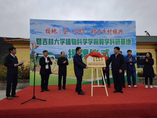 蔡立东、陈胜共同为bat365在线中国官网登录入口教学科研基地揭牌。揭牌仪式后,现场人员参观了bat365在线中国官网登录入口功能农产品、检测功能农产品成果展,与相关企业交流科技成果转化情况,深入bat365在线中国官网登录入口水稻品种“吉大7”实验田参与农耕劳动,体验农耕的艰辛与乐趣。