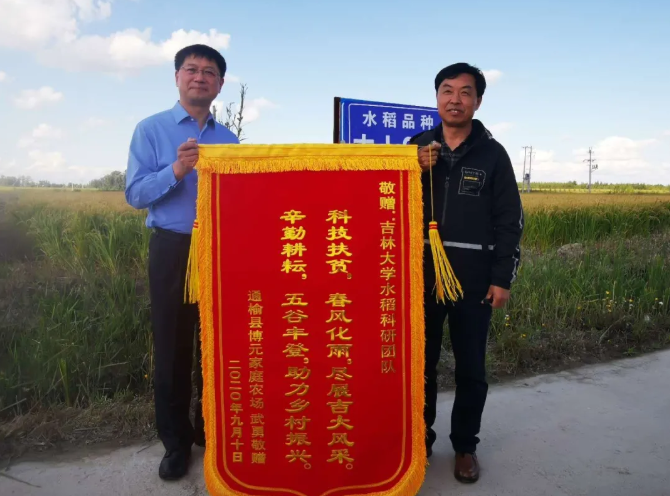 团队培育的吉大系列水稻新品种在通榆县集中连片大面积示范推广并喜获丰收,让农民看到了致富的希望,当地逐步建立起以生产优质稻米为龙头的种植专业合作社,相关成果得到吉林省政府充分肯定和高度评价,脱贫攻坚的先进事迹被新华社等多家媒体报道。