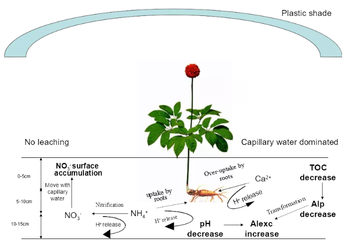 2006年参加工作以来,尤江峰沿着老一辈科学家的足迹,不畏山高林深,踏遍抚松、长白、集安等人参主要种植区,调查分析人参土壤环境、生长习性和红皮病的发病规律,挖掘人参适应逆境的自身潜力,着手解决人参生产实践中红皮病这一关键问题。围绕吉林省人参主产区土壤类型,从土壤条件、生理生化反应至分子生物学特征等方面阐述人参红皮病的发病机理,发现人参红皮病与交换性铝的溶出等因素有关,进而解析白浆型人参床土交换性铝溶出的过程,以及人参在基因和代谢水平上的响应。为人参红皮病的治理奠定理论基础。