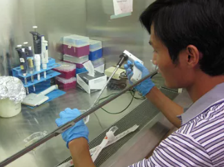 ▲尚庆利教授(左图)与潘怡欧教授(右图)指导学生开展实验