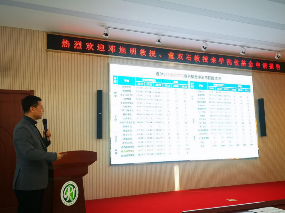 会上,董双石作了“2022年国家自然科学基金项目申请交流”专题报告,结合学院师资情况,给出关于基金申请切实可行的建议。邓旭明教授作了“怎样写好基础性研究项目申请书”专题报告,针对农学学科特点,给出了基金申请书的写作技巧和注意事项。两位专家的精彩报告使学院教师受益匪浅。