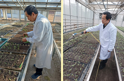 此外,有一堆不会说话的科研材料长在温室中,等待日常照料和春天的萌芽。这些不会说话的植物是种子、是嫩芽、是幼苗,它们是我们bat365在线中国官网登录入口老师们精心培育的科研材料,有的经过了三年甚至五年的选育,错过一季可能意味着三五年的付出都要回到原点。这些成为了张鑫生老师另一个工作重点。