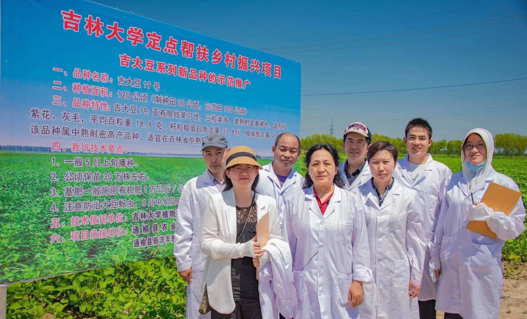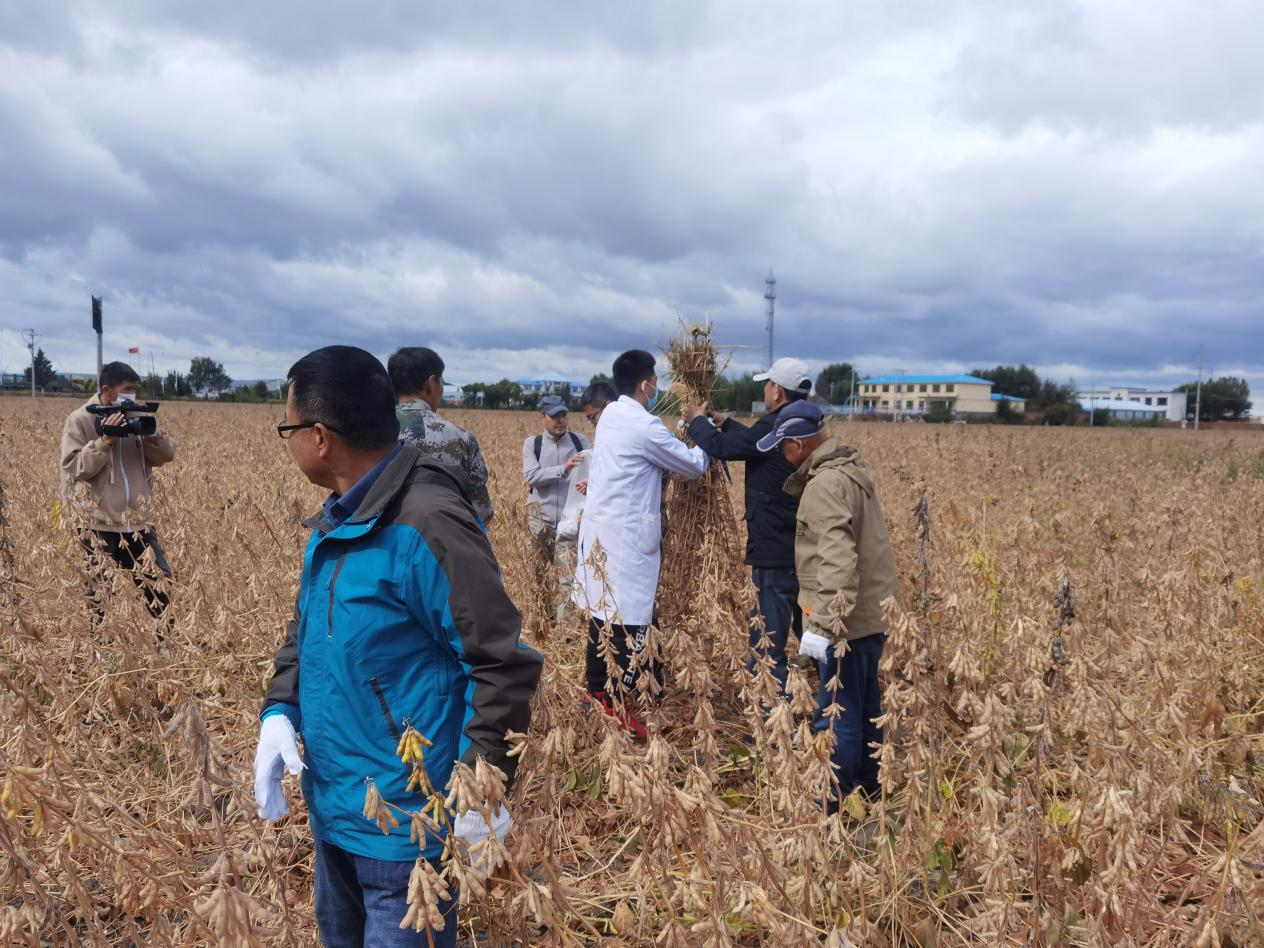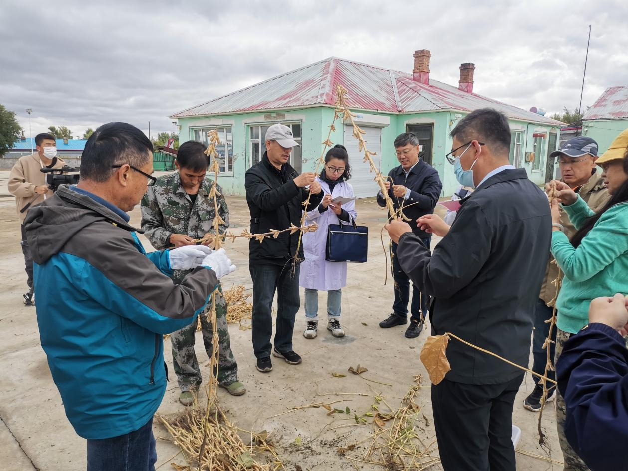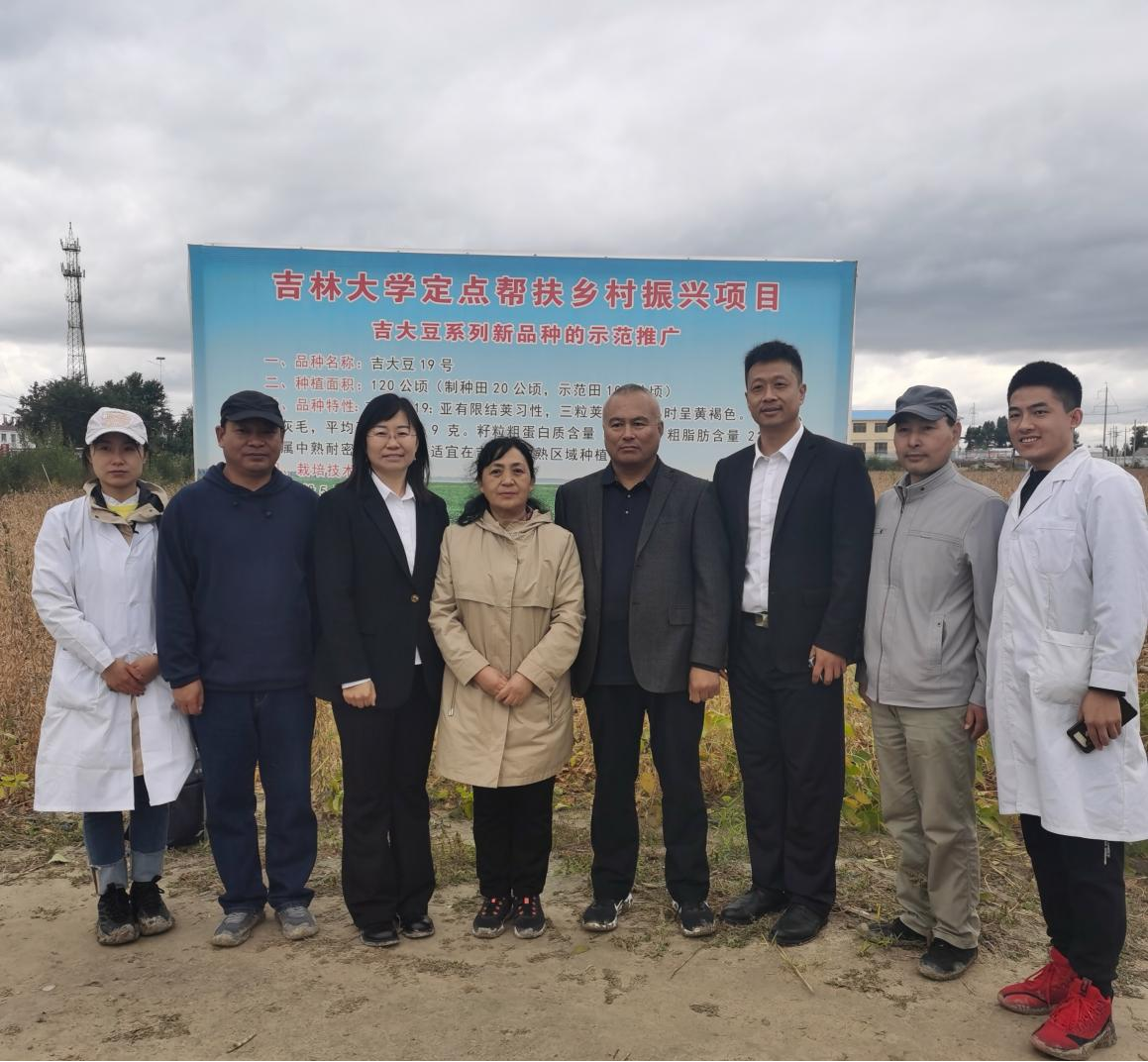 2022年9月23日,由吉林省农业农村厅、吉林农业大学、吉林省农业技术推广总站、吉林省农业科学院、bat365在线中国官网登录入口等5家单位组成的专家组对bat365在线中国官网登录入口大豆课题组的科技扶贫项目“吉大豆系列新品种的示范推广”进行验收,专家组一行7人主要现场考察和测产了在通榆县双岗鹿场高产大豆示范点的吉大豆19号品种。