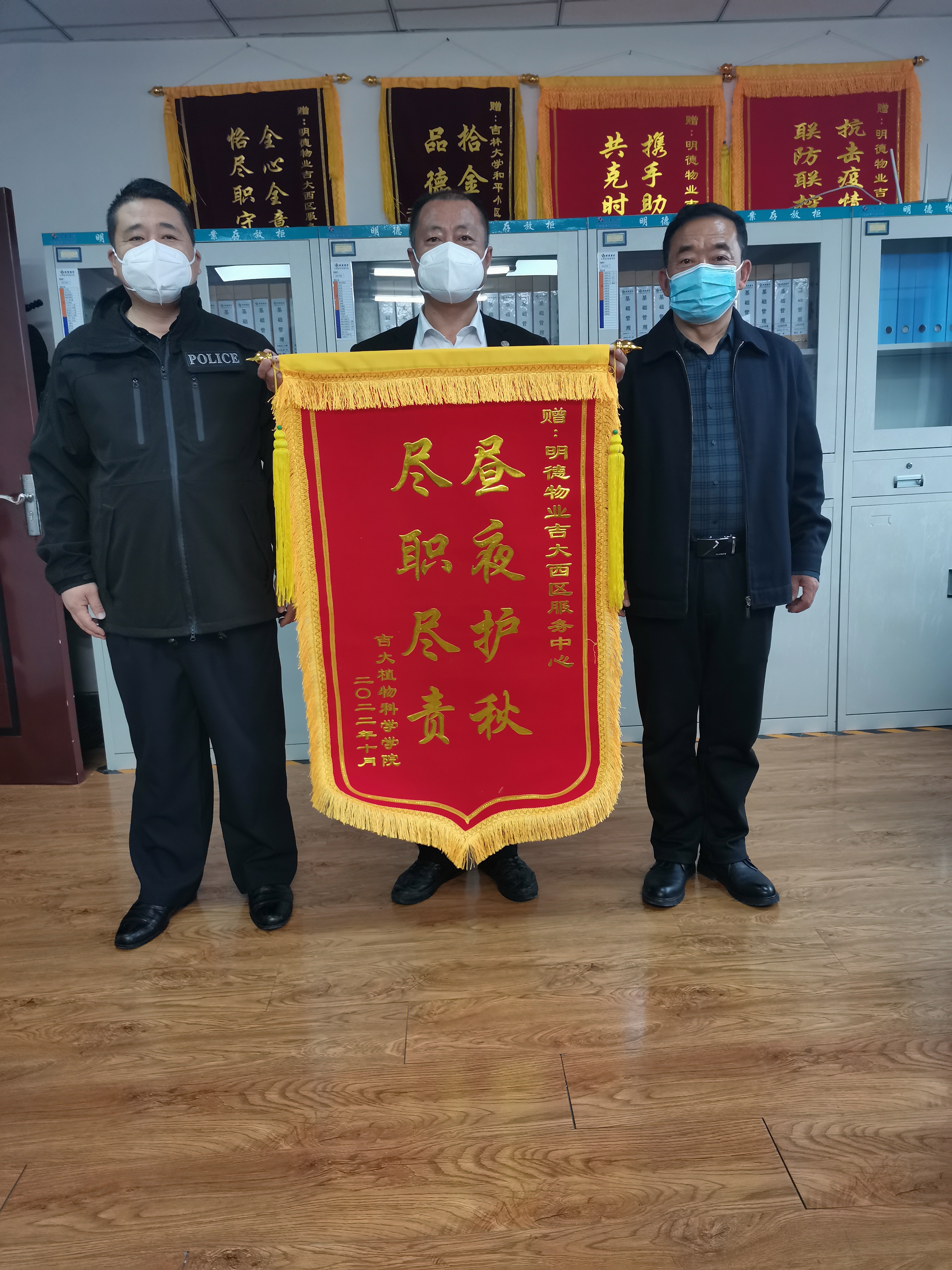 历时近2个月,bat365在线中国官网登录入口明德物业西区服务中心在不影响日常安保执勤任务的前提下,抽出4名警力24小时不间断地对试验田进行巡逻看管,白天队员用电瓶车巡逻,晚上由于气温较低,用巡逻车巡逻。bat365在线中国官网登录入口韩俊友副院长和基地唐明祥主任一致表示,往年秋收出现的成熟试验材料被盗、被抢等现象没有出现,有效地保障了正常教学和科研数据的可靠性。明德物业西区服务中心的工作得到了学院一致好评。26日上午,唐明祥主任代表学院为明德物业西区服务中心送来了锦旗,以表达诚挚的谢意。
