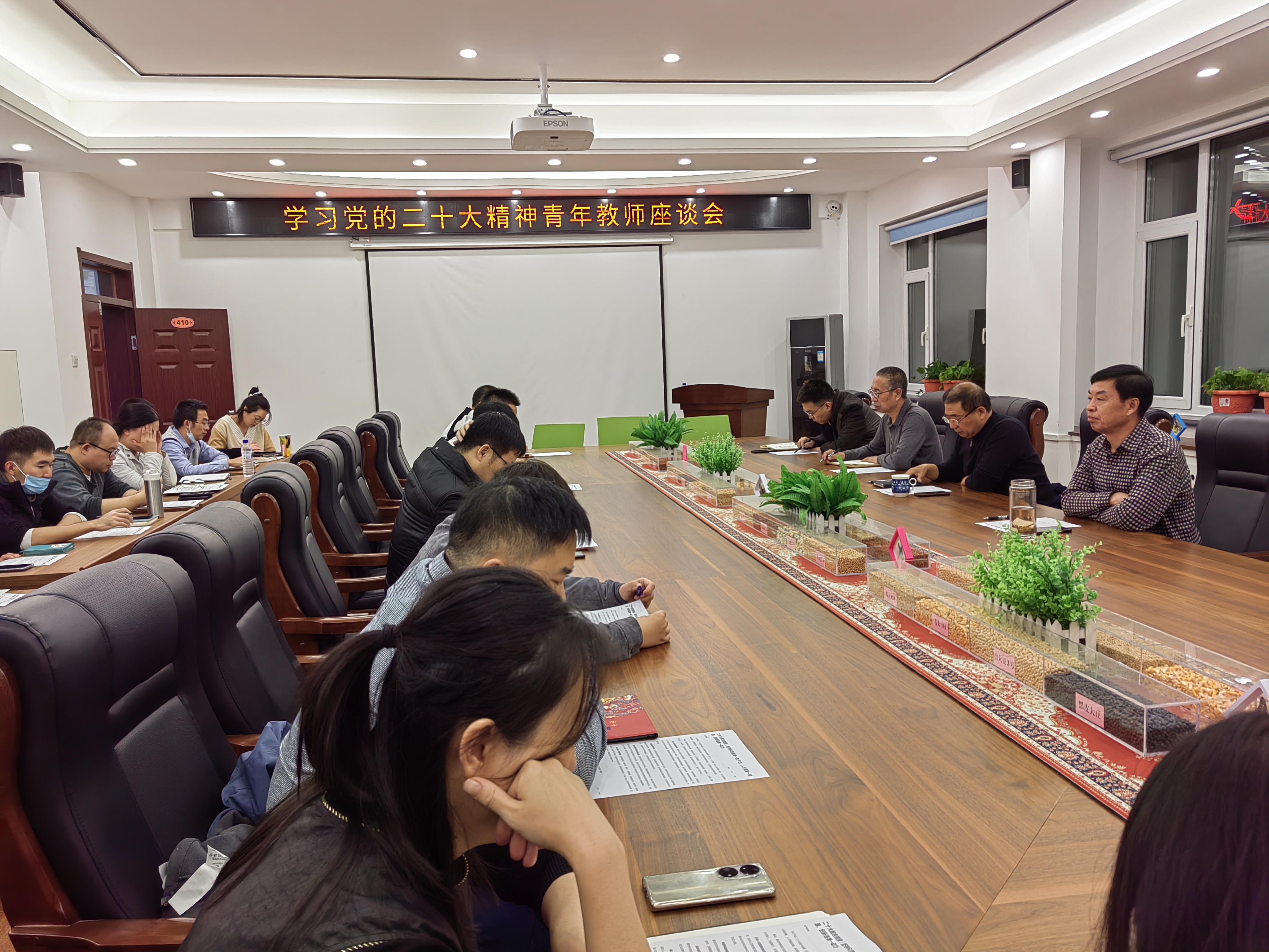 10月31日晚6时,bat365在线中国官网登录入口党委组织学院青年教师开展学习党的二十大精神座谈会,学院党委委员、22名青年教师、学院机关科室负责人参会,会议由学院党委书记于生宗同志主持。