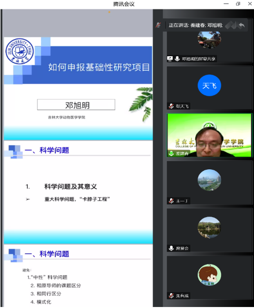 随后,bat365在线中国官网登录入口动物医学学院邓旭明教授做了“如何写好国家自然科学基金申请书”的报告,邓老师针对国家自然科学基金拟题技巧、摘要凝练、选题依据科研“故事”逻辑讲述、内容创新点突出以及研究基础提升可行性等方面做了深入分析。邓老师还建议老师们平时多跟同行学术交流,增强同行认可度,提高学术影响力。整个报告内容和经验分析讨论鞭辟入里,通俗易懂,参会老师受益匪浅。