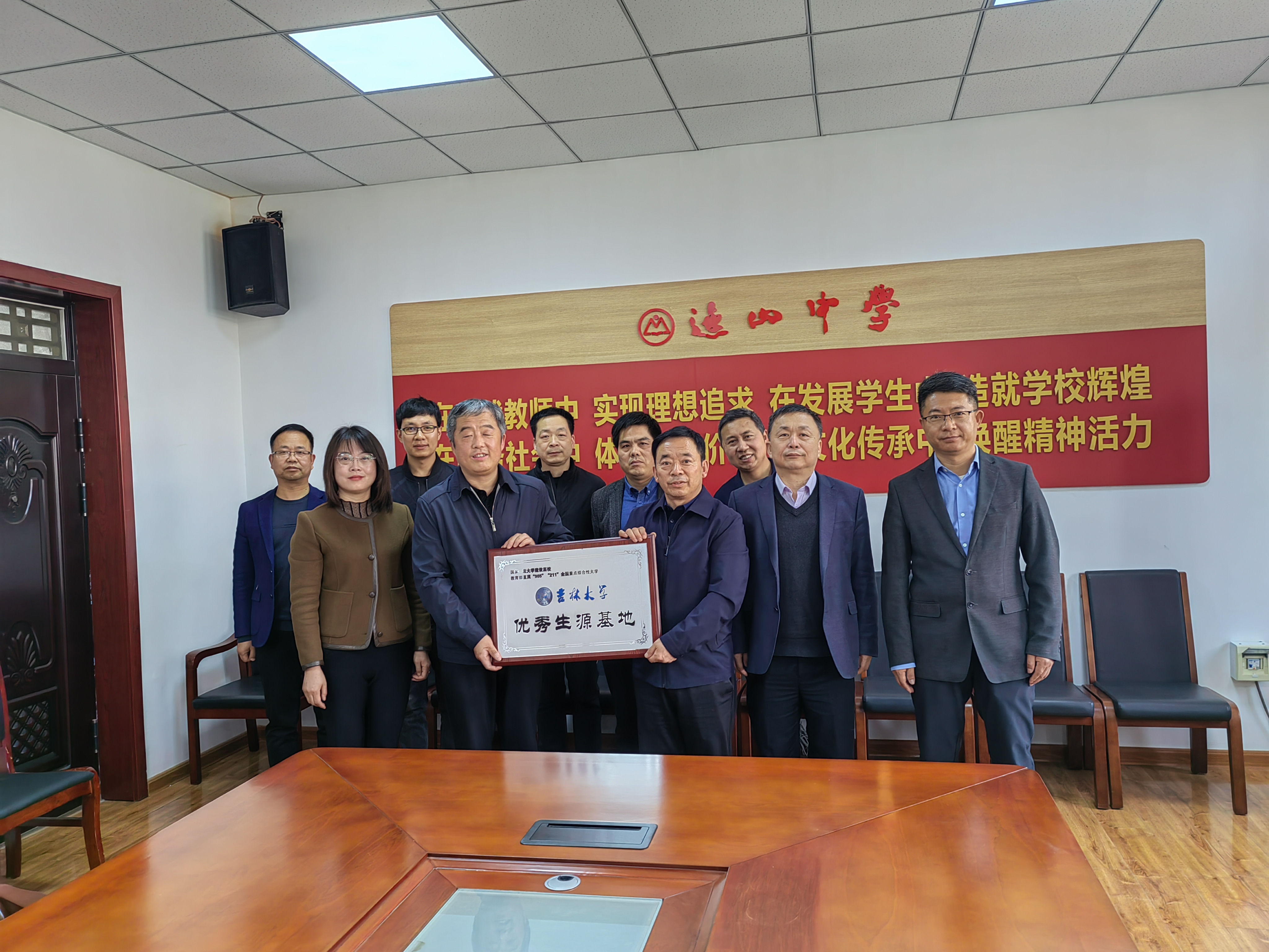 在富平县迤山中学,首先召开了座谈会,会上唐明祥老师给迤山中学授“bat365在线中国官网登录入口优秀生源基地”牌匾,尹小昌书记接牌,最后由任增元老师给高二年级300余人做了精彩的宣讲报告,在宣讲报告之前还观看了bat365在线中国官网登录入口招生宣传片“筑梦起航在吉大”,参加招生宣传活动的中学方人员有尹小昌书记、副书记兼高二年级主任范丽娟、高二年级重点班主任等。