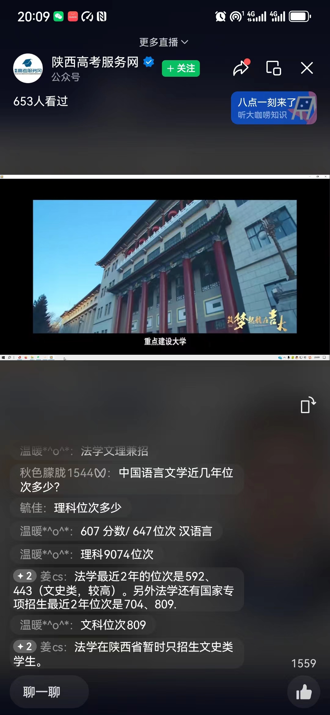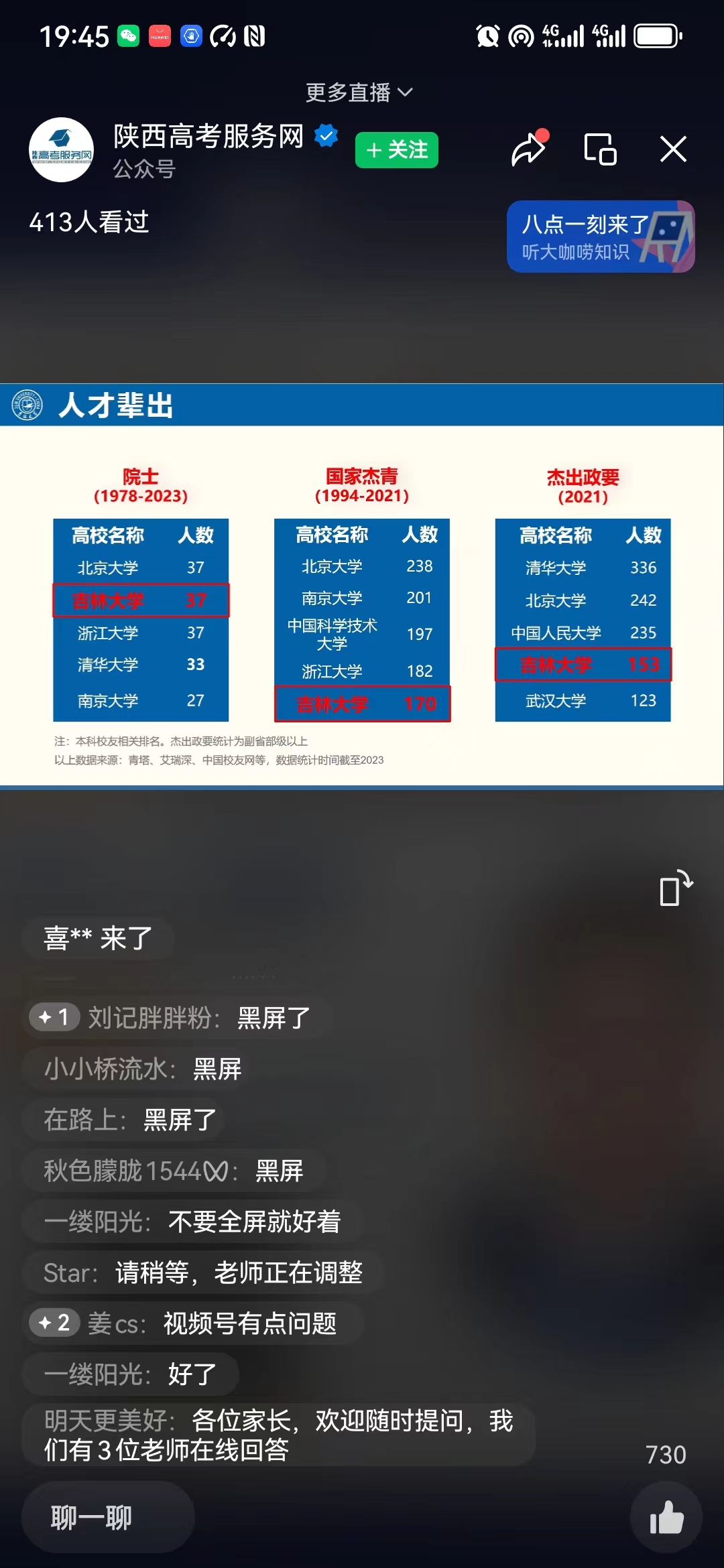 宣讲会是通过陕西高考服务网视频号直播平台进行的,刘金亮老师从从bat365在线中国官网登录入口的办学特色、招生和培养模式、bat365在线中国官网登录入口历年在陕西省的招生录取情况等多维度做了一场生动的招生宣讲报告,同时在做选前报告的前后还播放了bat365在线中国官网登录入口的招生宣传片,唐明祥、姜长松、温海娇3位老师实时为考生家长答疑解惑。