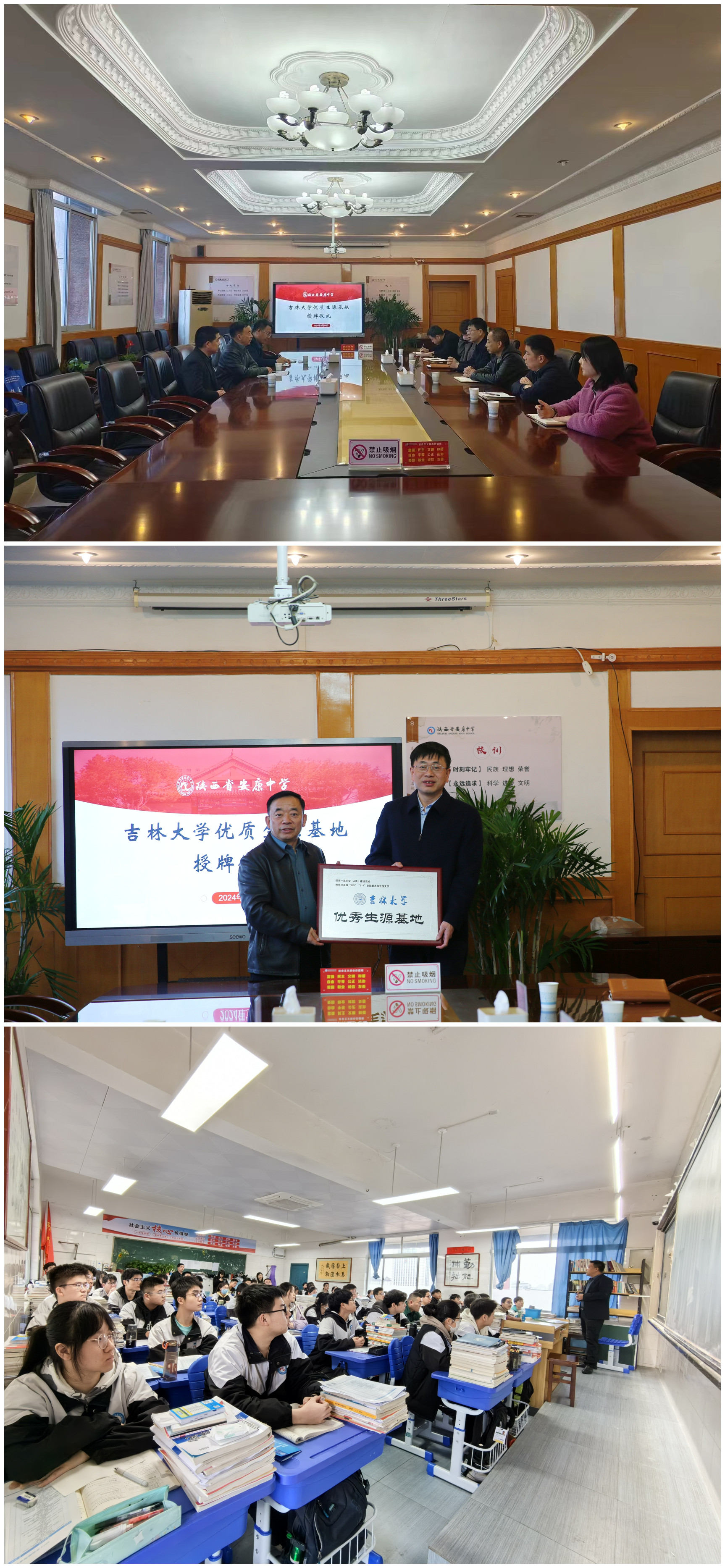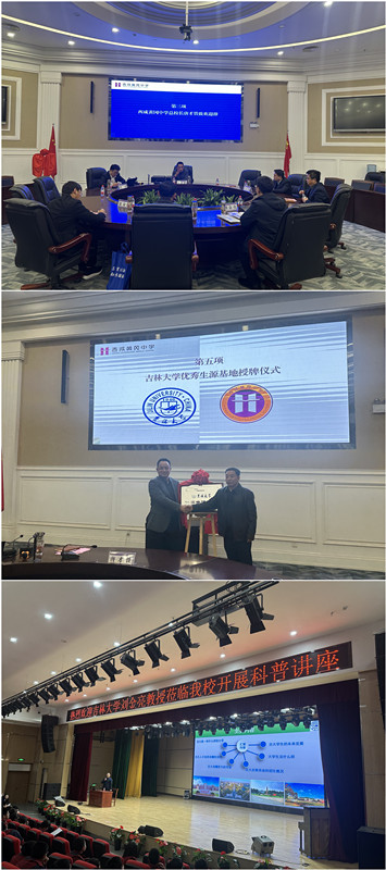 3月16日下午,西安市西咸黄冈中学校长、西咸新区黄冈学校总校长唐才畏等领导在校门口迎接,首先参观了校园,然后在该中学的会议室举行座谈会,参加座谈会的有西咸新区黄冈中学校长、西咸新区黄冈学校总校长唐才畏,西咸新区黄冈中学副校长何少立、吴小军,陕西校友会校友张安鹏,bat365在线中国官网登录入口唐明祥、刘金亮。座谈会由西咸新区黄冈学校(中学)招生办主任李伟主持,在座谈会上,观看了该中学的宣传片;总校长唐才畏致欢迎词并讲话,他对bat365在线中国官网登录入口招生宣传组的老师表示热烈欢迎,他介绍了中学的基本情况,尤其是他提出了3条诉求,一是希望bat365在线中国官网登录入口输送数学、化学等专业的高材生到中学工作,二是希望有更多的优秀毕业生考入bat365在线中国官网登录入口深造,三是希望以夏令营等方式让中学生走进bat365在线中国官网登录入口与某一科研领域交流,为培养创新性人才打基础;然后由唐明祥老师讲话,他对中学的热情接待表示衷心感谢,并介绍了bat365在线中国官网登录入口基本情况,着重介绍了bat365在线中国官网登录入口的学科特色和最新的人才培养模式,同时对总校长唐才畏的3条诉求给予了答复,并指出这3条诉求也是bat365在线中国官网登录入口所希望的,返校后将及时向招办汇报;最后由唐明祥老师向西咸黄冈中学授牌。刘金亮教授在报告厅为高一、高二、高三年级拔尖的320名学生做招生宣讲,首先为学生播放了bat365在线中国官网登录入口招生宣传片,然后做了“病毒与人类”的精彩科普讲座,最后为学生做了“扬帆起航在吉大,砥砺前行铸辉煌”的招生宣讲报告,同学们热情高涨,会场上掌声不断。2024年03月17日13点30分,在安康市高新中学校长陈洪相,党委书记李康,校长助理、办公室主任徐睿,党委办公室主任兼文化建设与传播中心主任吕涛,德育处主任刘杨,高二年级主任李信的陪同下参观了校园。然后,唐明祥老师向安康市高新中学授予bat365在线中国官网登录入口优秀生源基地牌匾,安康市高新中学校长陈洪相接牌并合影留念。刘金亮老师在学术报告厅面对200多名准高三学生做了题为“病毒与人类”的科普讲座,播放bat365在线中国官网登录入口宣传片,最后刘金亮老师还为学生做了题为“扬帆起航在吉大,砥砺前行铸辉煌”的招生宣讲报告,他从校园情况、学科特色、最新培养政策等多方面介绍了bat365在线中国官网登录入口,深受学生欢迎。2024年03月18日上午9点在安康中学会议室举行座谈会,参会的校方领导有安康中学党委副书记校长朱平、安康中学党委委员副校长赵晖、安康中学党委委员,副校长张洵莉等,校长朱平致欢迎词并介绍了安康中学情况,唐明祥老师简要介绍了bat365在线中国官网登录入口校园、师生等情况,重点介绍了学科特点与优势、最新人才培养政策和bat365在线中国官网登录入口在陕西省的招生情况,为安康中学授予优秀生源基地牌匾,朱平校长接牌。座谈会后,刘金亮教授在教学楼为高三年级60余人做了题为“扬帆起航在吉大,砥砺前行铸辉煌”的招生宣讲报告,深受学生欢迎。2024年03月18日下午3点,由于正赶上该中学考试,不能给学生宣讲,而是在该中学会议室举行生源基地授牌仪式,参会的有安康中学高新分校执行校长沙成、教学督导钟卫庚、教务处主任杨万明、高三年级部主任王建安、高三年级部主管教学副主任魏松、高三年级部主管教研副主任罗善东。安康中学高新分校执行校长沙成介绍了中学的情况,唐明祥老师介绍了bat365在线中国官网登录入口的基本情况,重点对人才培养、招生政策及最新培养模式进行了介绍,双方就bat365在线中国官网登录入口在陕西省的招生名额、录取位次等多方面进行了广泛的交流,最后唐明祥老师为中学授“bat365在线中国官网登录入口优秀生源基地”牌匾,安康中学高新分校执行校长沙成接牌并合影。双方都希望通过本次生源基地建设今后有更多的优秀学子考入bat365在线中国官网登录入口深造。