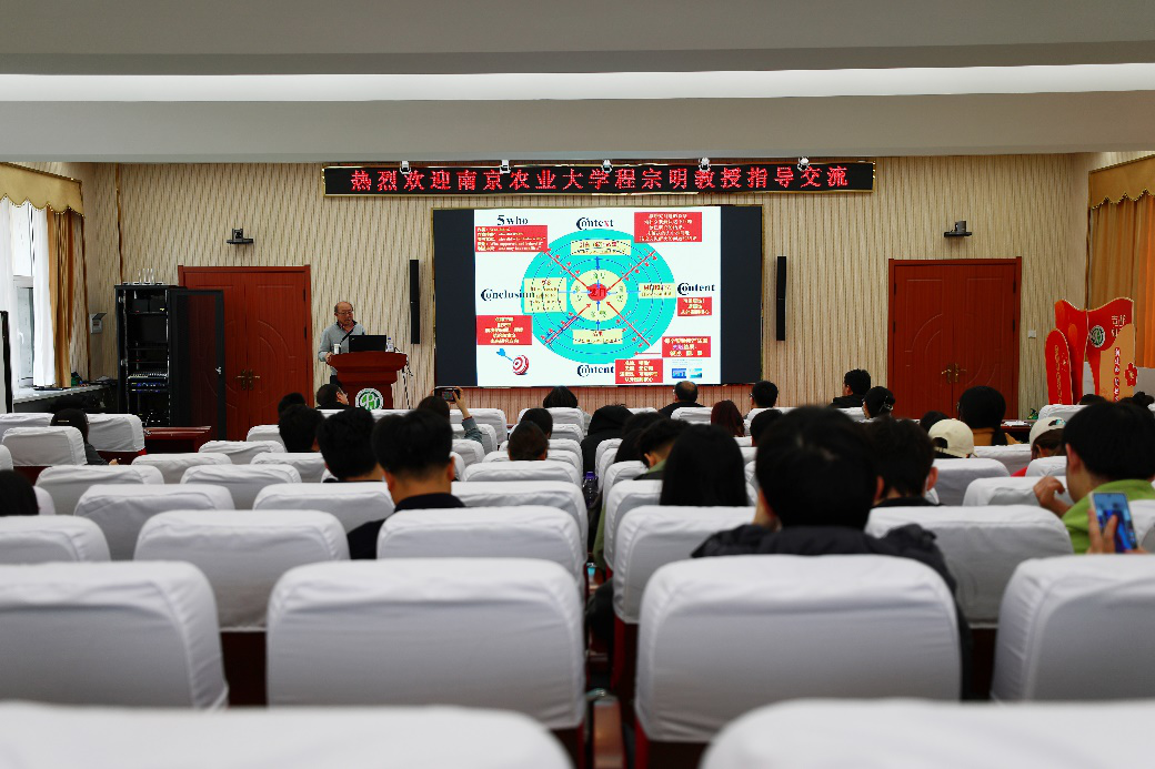 进一步推进我校“强农兴农活动”,促进“智慧园艺特色班”建设,4月16日上午,南京农业大学园艺学院教授、美国田纳西大学植物科学系荣退教授、Horticulture Research(园艺领域排名第一)主编程宗明教授应邀来我院进行学术交流,并以“科研与SCI论文写作和发表全程剖析”为题做了一场精彩的学术报告报告由学院副院长秦建春教授主持,我院80余名师生参加了此次报告会