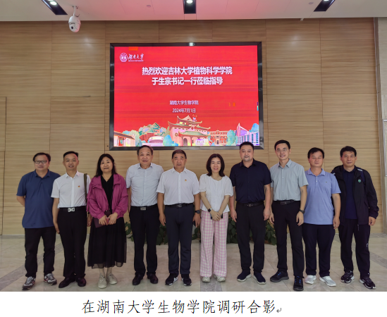 为深入贯彻学校党委强农兴农部署,以党建引领“强农兴农行动”各项任务落实落细,2024年7月1日至4日,学院党委书记于生宗一行6人赴湖南大学生物学院、湖南农业大学农学院、隆平高科种业科学院等单位,围绕强化“党建+学科”“党建+人才培养”“党建+就业”等开展调研。学院玉米育种专家原亚萍教授、园艺系系主任边少敏教授、水稻育种团队骨干姜文洙教授、党委办公室主任许琳莉、综合办公室主任吴成锋共同参与调研。