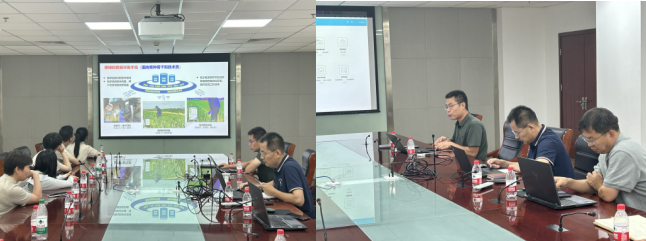 活动伊始,我院王英老师和闫帆老师与北京市农林科学院信息技术研究中心的老师们就生物育种工作的未来发展前景进行了探讨。随后,北京市农林科学院信息技术研究中心的刘忠强老师对作物育种信息化技术的研究与应用方面展开分析,并对“金种子”智能化育种平台进行了详细介绍,同时讲解了部分智能化育种技术在实际生产中的运用及“金种子”育种平台当前在种质资源库管理、品种信息收集等方面的使用实例。讲解过程中,王英老师与刘忠强老师进行了技术方面的深入交流,并对其实际应用于科研环节的可能性展开了细致的探讨和咨询。