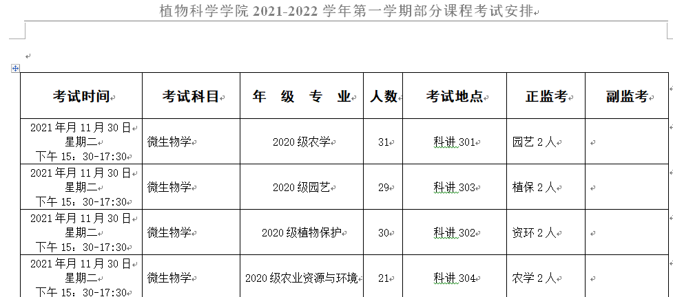 微生物考试安排