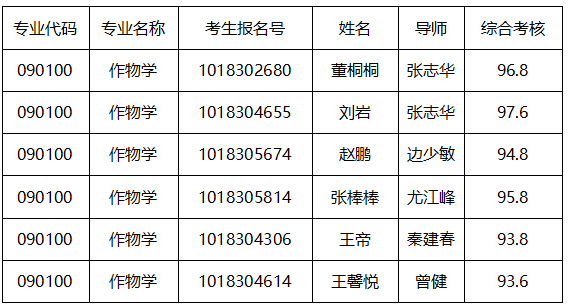 2025年硕博连读研究生推荐选拔通过考核研究生名单公示束