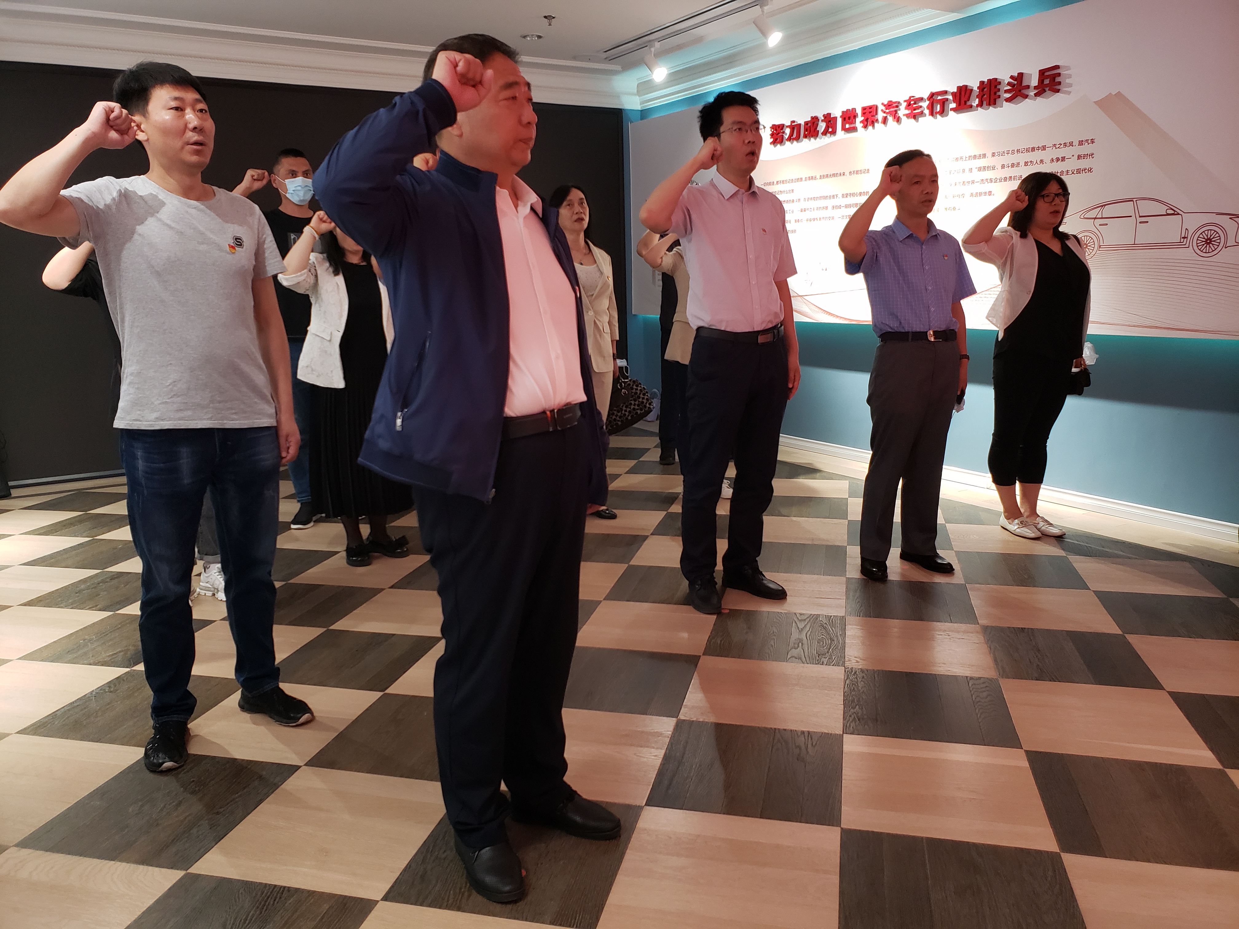 上午9时,全体人员抵达长春市一汽历史文化展馆,在讲解员的带领下,参观了新中国汽车工业摇篮的发展与成长史,通过珍贵的历史文献和图片资料感受了在党的领导下中国第一汽车集团有限公司从1953年的奠基兴建到现如今的蓬勃发展,长春一汽人不忘初心使命、艰苦奋斗的创业精神和勇于进取的时代精神。参观结束后,学院党委书记于生宗同志带领全体党员面向党旗重温入党誓词。