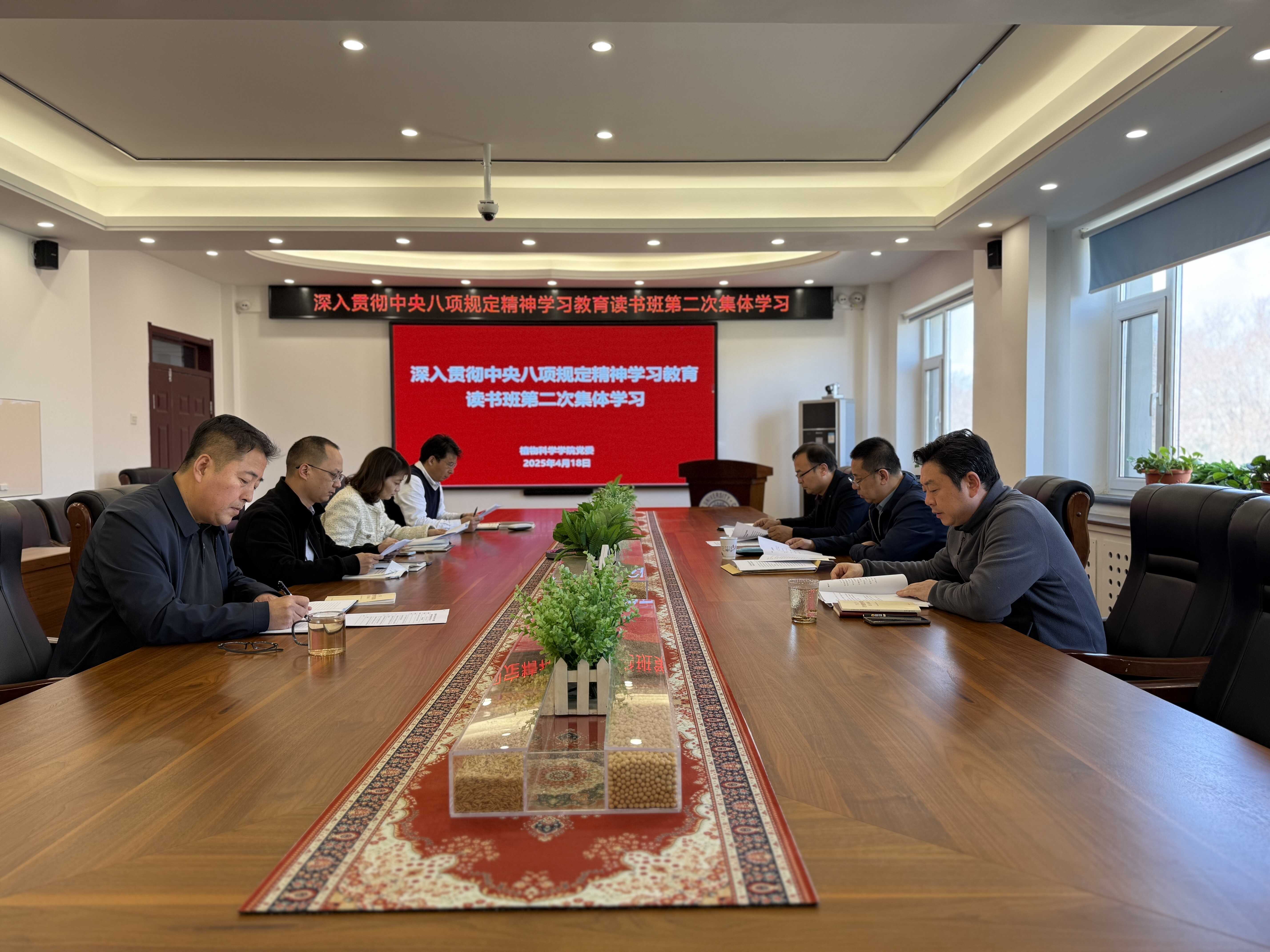 2025年4月18日中午,bat365在线中国官网登录入口召开深入贯彻中央八项规定精神学习教育专题读书班(第二次)集中学习,学院领导班子全体成员参会,校党建联络员高福和到会指导,会议由党委书记田进主持。