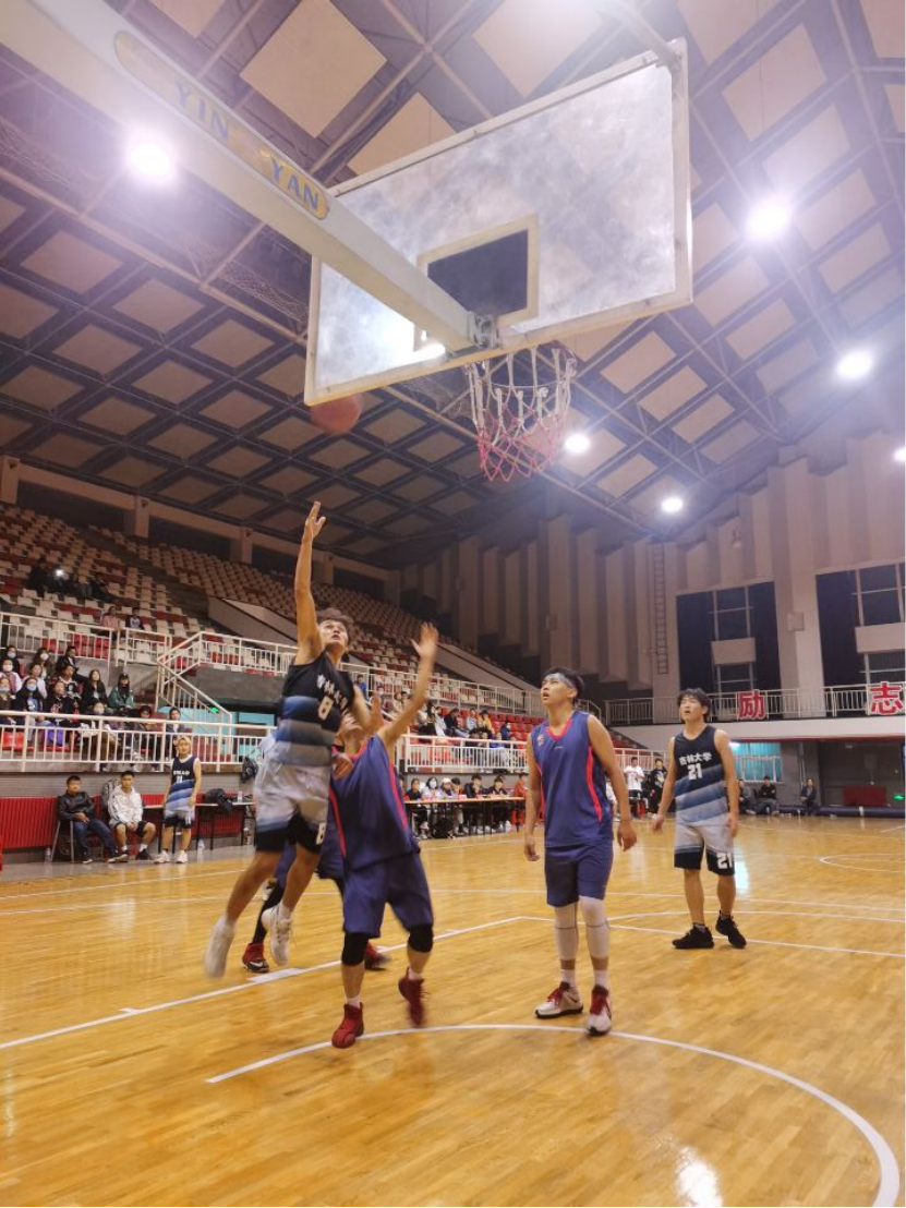 在激烈的冠亚军争夺赛开始前,增加了趣味篮球赛。由我院女同学积极参与组成了四支队伍,她们相互传球,中投命中,充分调动了全场同学们的热情,活跃了赛前氛围。