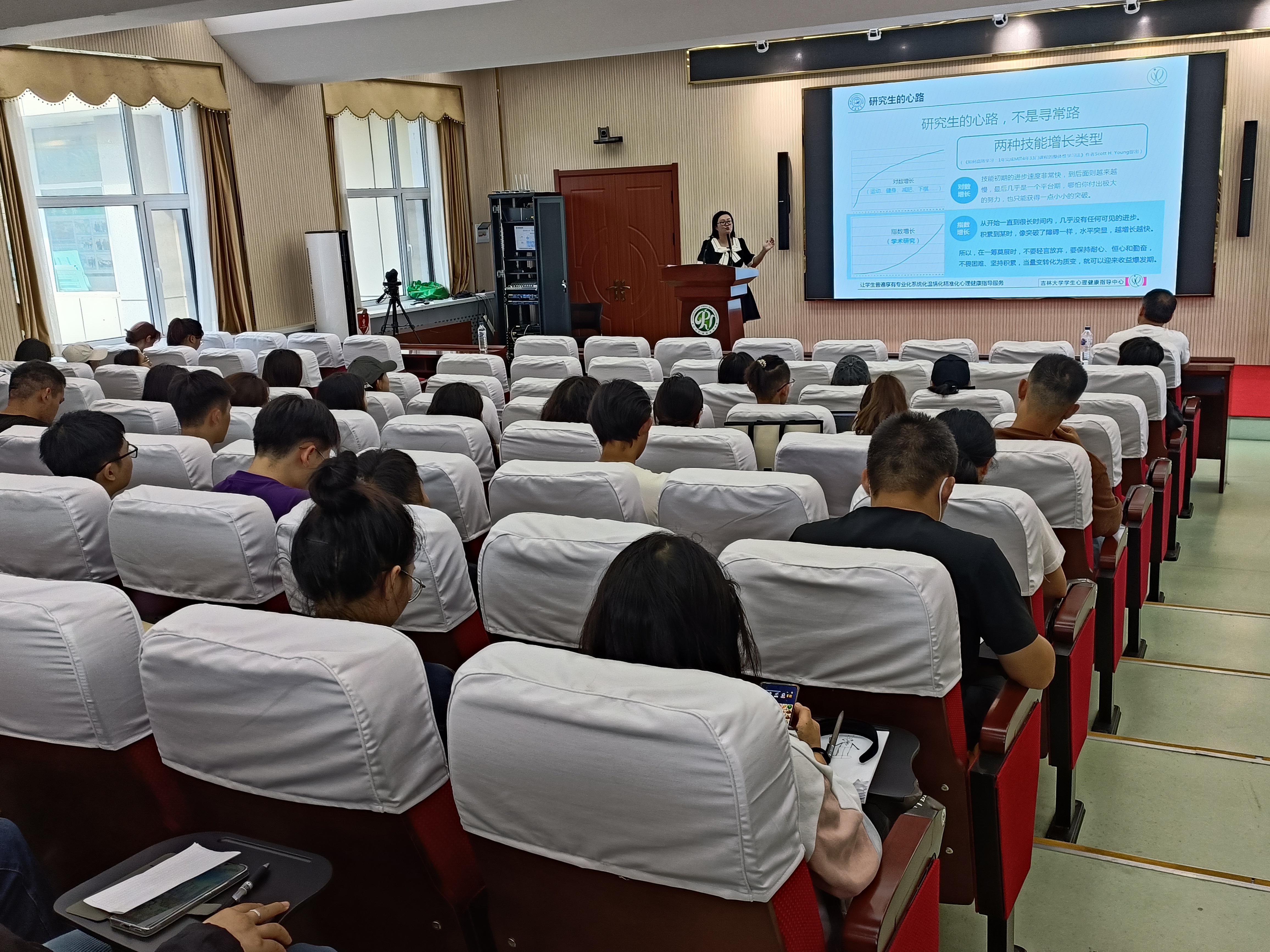 最后,汤老师重点介绍了学校的心理健康指导服务,向同学们展示了学校设立的心理咨询室等,分享了各校区学生心理素质培育基地工作时间、地点与预约方式,并鼓励有需要的同学们前去咨询。希望新同学们能以自信、饱满的精神状态迎接研究 生学习、生活、科研中的挑战。