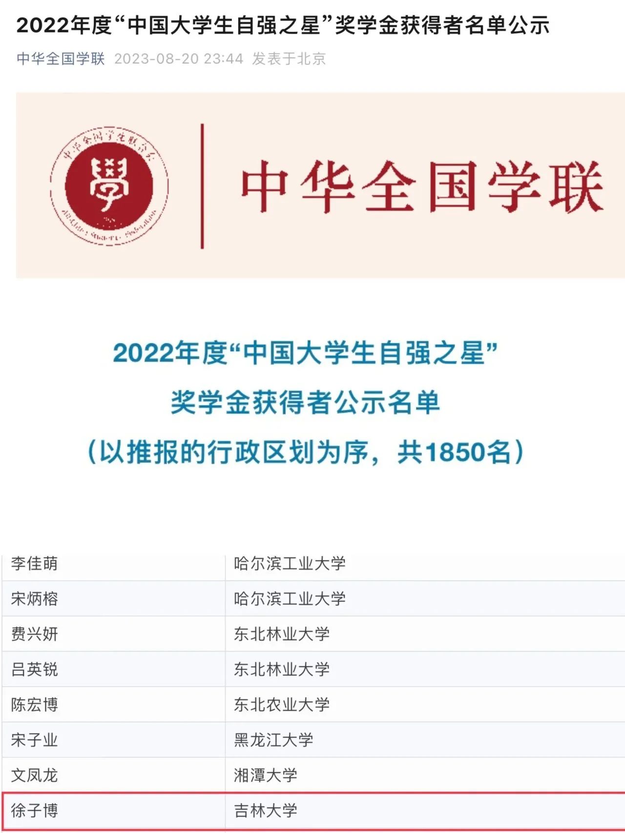 近日,由共青团中央、全国学联指导,中国青年报社、新东方教育科技集团、中国青年创业就业基金会联合举办的2022年度“中国大学生自强之星”活动的评选结果正式揭晓。我院2022级作物学专业硕士研究生徐子博荣获2022年度“中国大学生自强之星”荣誉称号。