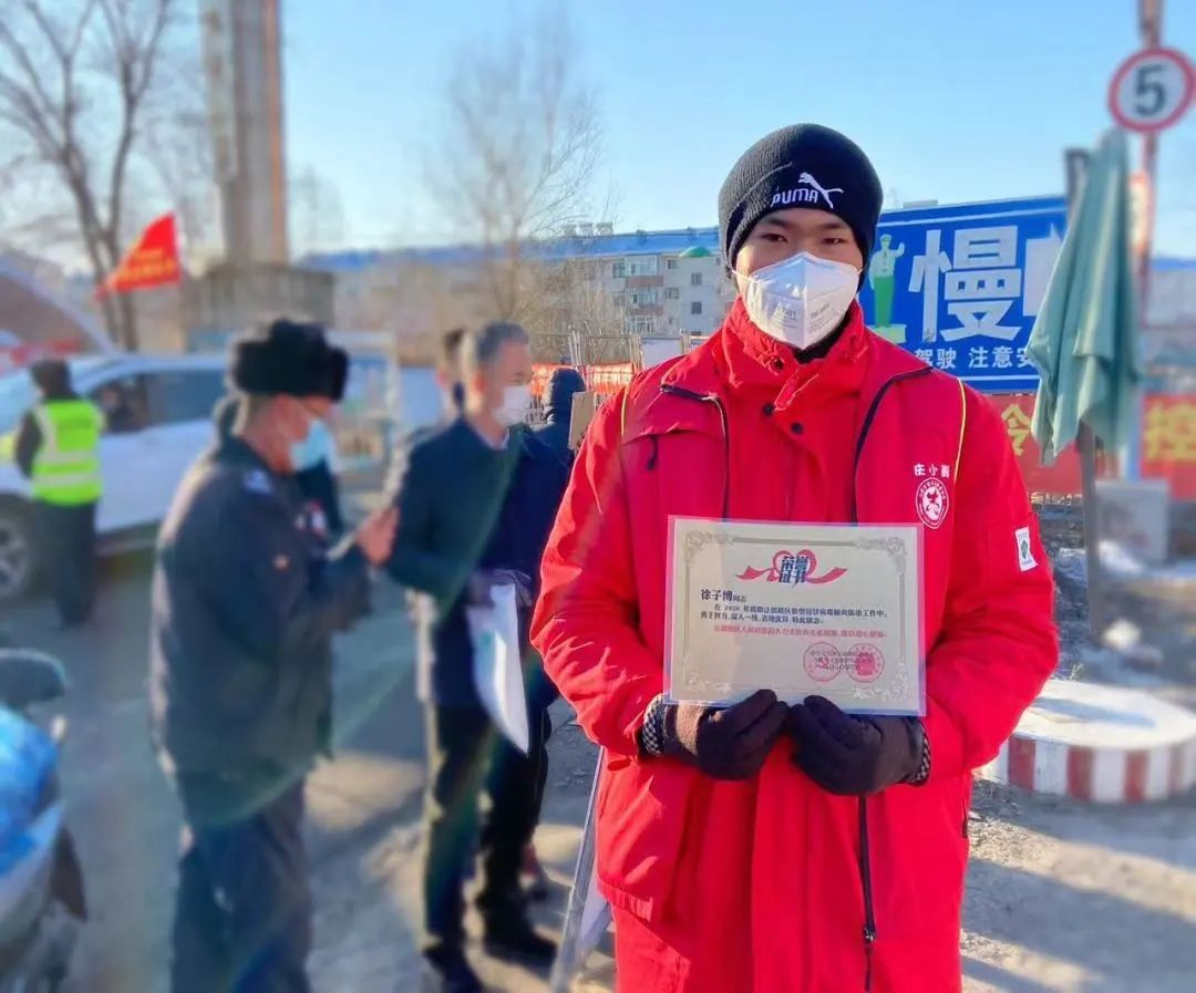 牢记使命——争做社会实践的“践行者”。他不仅在校内积极参加学术科研活动、讲座,在课余时间外也积极参加社会实践活动,他希望可以做一个对国家、对人民、对社会有用的人。做“一抹红”。自2020年疫情开始,他一直挺身而出,志在为家乡贡献力量。他曾在疫情最严重时,在社区门口“站岗”84天;也曾动员组建大庆市疫情防控青年志愿队,负责统筹安排全市6000余名青年志愿者的疫情防控志愿工作。做“一根钉”。自2020年起,他任职大庆市青年志愿者协会副会长,并于2021年当选为大庆市志愿服务联合会会员,直到现在,他一直致力于推动大庆市青年志愿服务领域建设,多次在线上线下组织各类文明宣传、扶贫、助困、助农等活动,覆盖人次达8000余人,曾获得大庆市“优秀青年志愿者”、“大庆好网民”等荣誉称号。做“强基石”。受上级要求,他于2021年受命组建大庆市共青团新媒体中心,并担任负责人一职,任职期间,承担各类新媒体工作200余项,工作受到领导的一致认可。