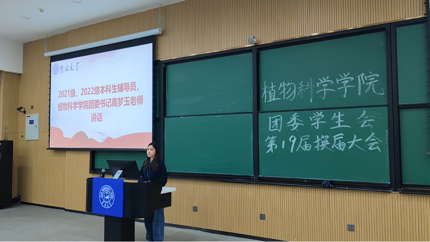 为全方位促进我院学生组织的蓬勃发展,庚续我院学生干部以身作则、率先垂范的卓越风采,积极推动学生组织建设,bat365在线中国官网登录入口第十九届团委学生组织换届大会于11月8日在bat365在线中国官网登录入口中心校区敬信教学楼F区第九阶梯教室召开。植物科学学院团委书记高梦玉,本科生辅导员冯振宇及兼职辅导员薛傲然参加活动。第十八届、第十九届学生组织全体成员、志愿者参加活动,共同见证了这一重要时刻。