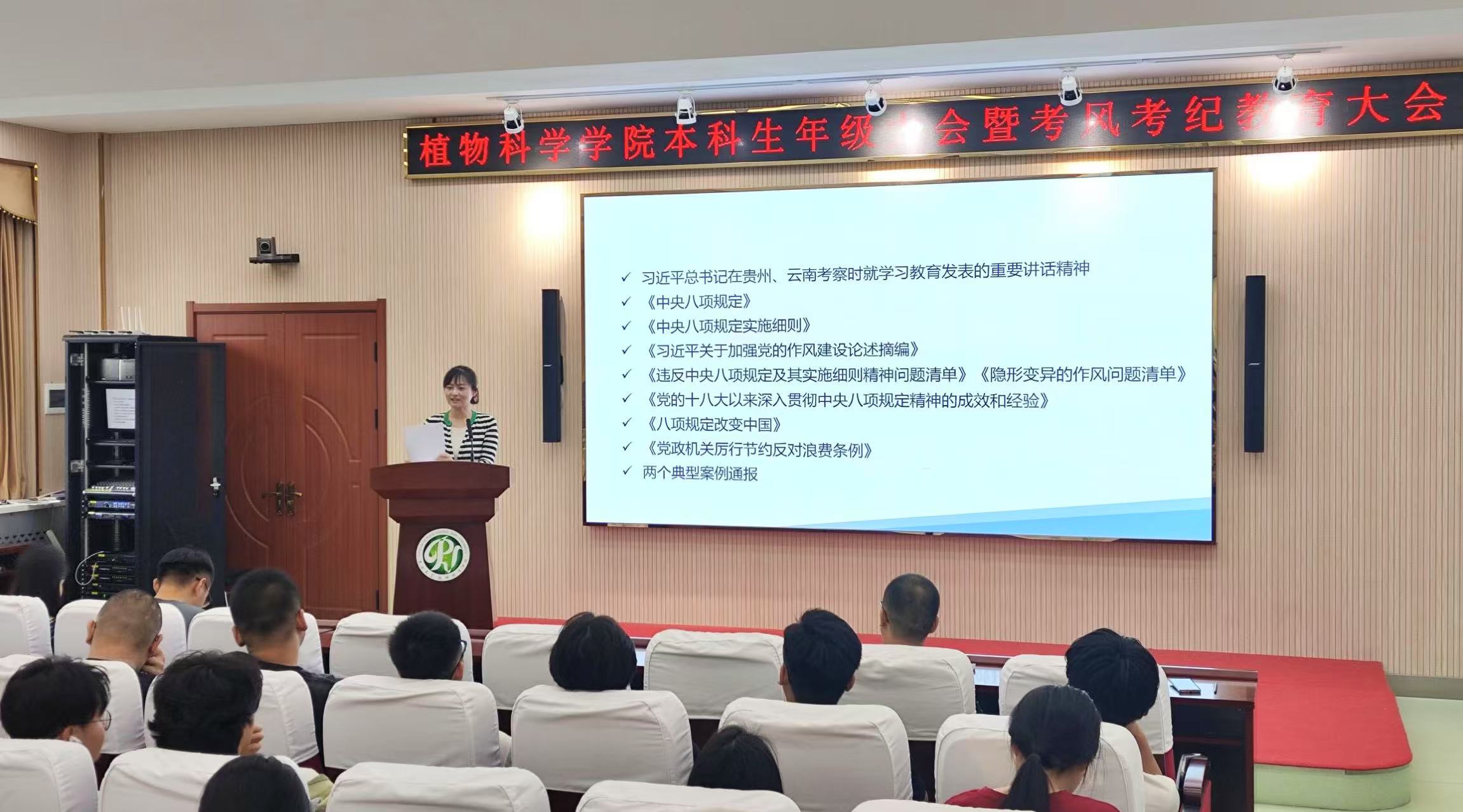 郑蕊以本科生的诚信与监督权责为主题展开,诚信首先是严格的自我约束,同时也需要有效的他人监督,两者权责统一。目前,学生党员须高标准参与到深入贯彻中央八项规定精神学习教育活动中,发挥表率作用;全体同学有权监督身边党员的学习情况及师生行为规范。学院通过严禁违规吃喝等影响公平的行为、畅通举报渠道(邮箱、电话)等,坚决保障学生正当权益不受侵害。希望同学们期末考试后,学院开展的学院发展建议征集活动中真诚建议、踊跃发言。